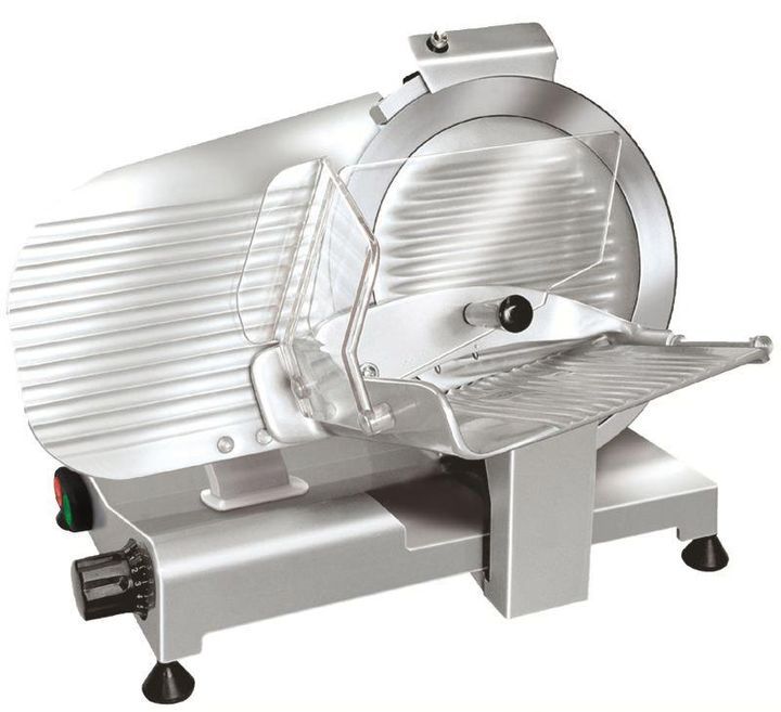 Максимальный размер нарезаемого продукта 245х220 мм. Встроенное заточное устройство. Термический блокиратор, автоматически останавливающий машину в случае перегрева двигателя. Профессиональное хромированное лезвие с двухсторонней заточкой.