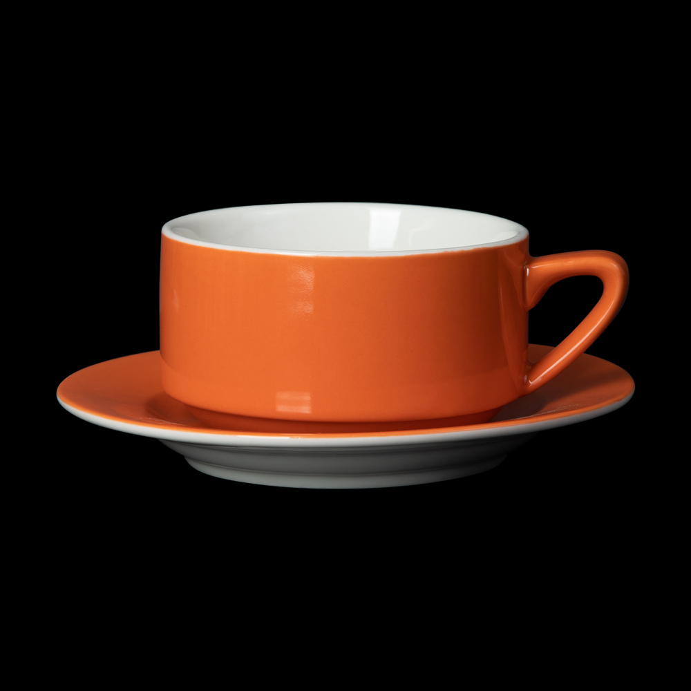 Тип посуды: чайная пара; Серия: Gusto; Материал: фарфор; Форма: традиционная; Основной цвет: оранжевый; Номинальный объем, мл: 300; Особенности: форма штабелируемая;
