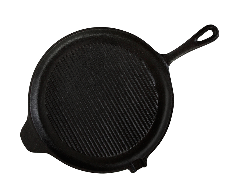 Сковорода 275/18 мм рифленая с ручкой и носиком чугун Luxstahl [НЕ866]