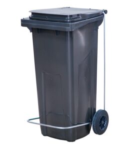 Россия Бак для мусора 120 л. 55*45*96 см. серый, с крышкой на колёсах с педалью /1/