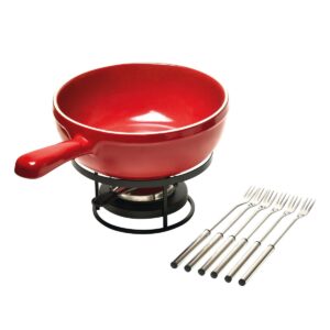 EMILE HENRY (Франция) Набор для фондю 2,5 л. h=90 мм. d=220 мм. на подставке с вилками (6шт) красный керам Emile Henry /1/