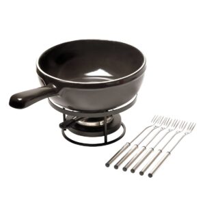 EMILE HENRY (Франция) Набор для фондю 2,5 л. h=90 мм. d=220 мм. на подставке с вилками (6 шт.) черный керам Emile Henry /1/