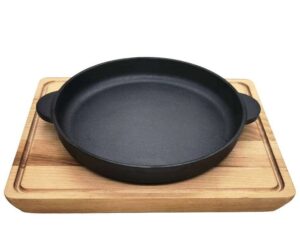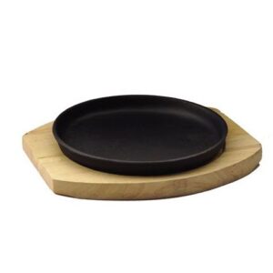 Чугун (Китай) Сковорода порц. d=18,5 см. h=2 см. чугун. на дерев. подставке /1/10/