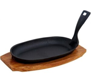 Чугун (Россия) Сковорода 26,5*17,5 см. h=4,3 см. чугун. съемная ручка на дерев. подставке /1/12/